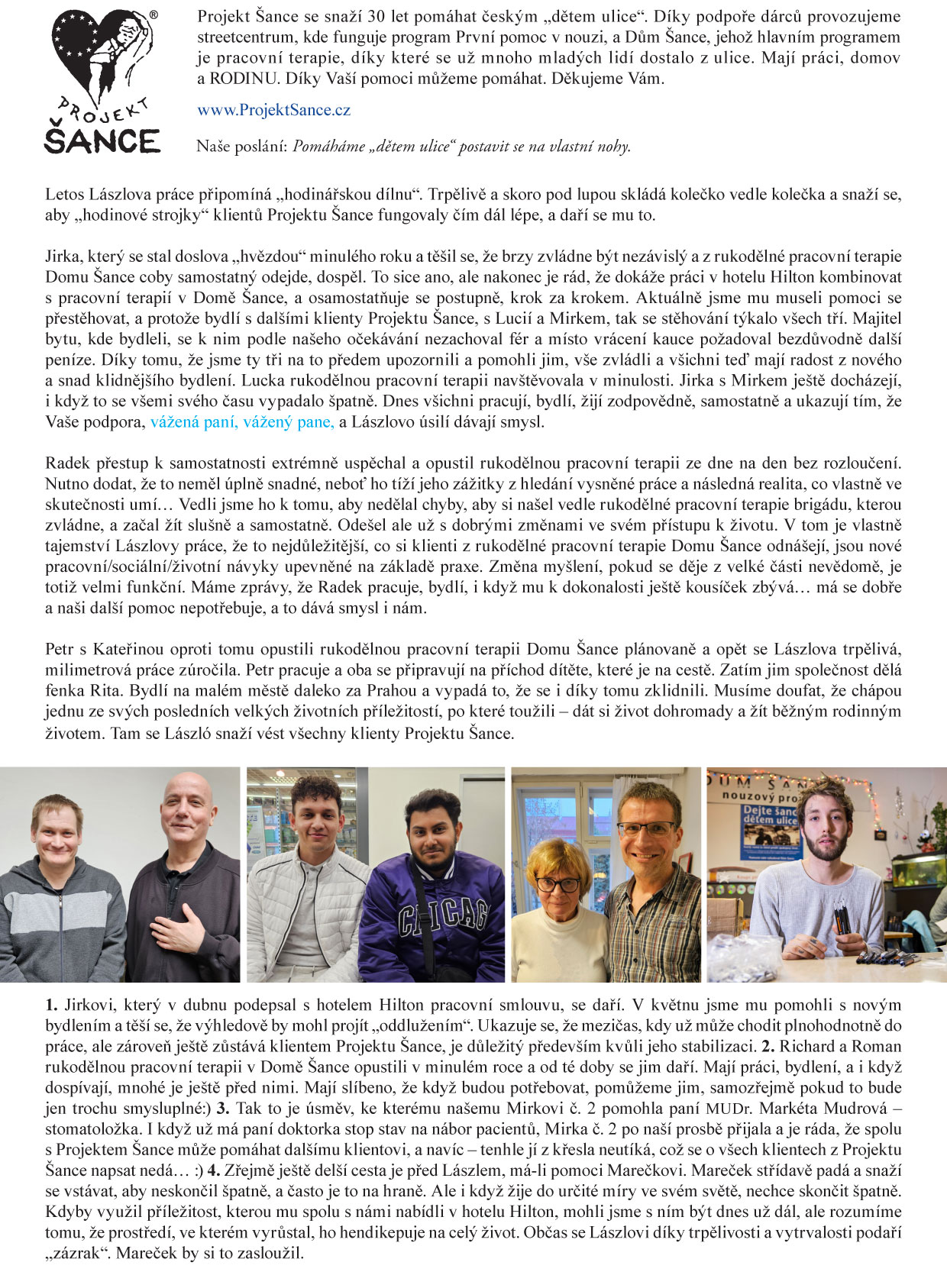A že nám to jde, si můžete přečíst v dalším dopise, který Projekt Šance vydal.