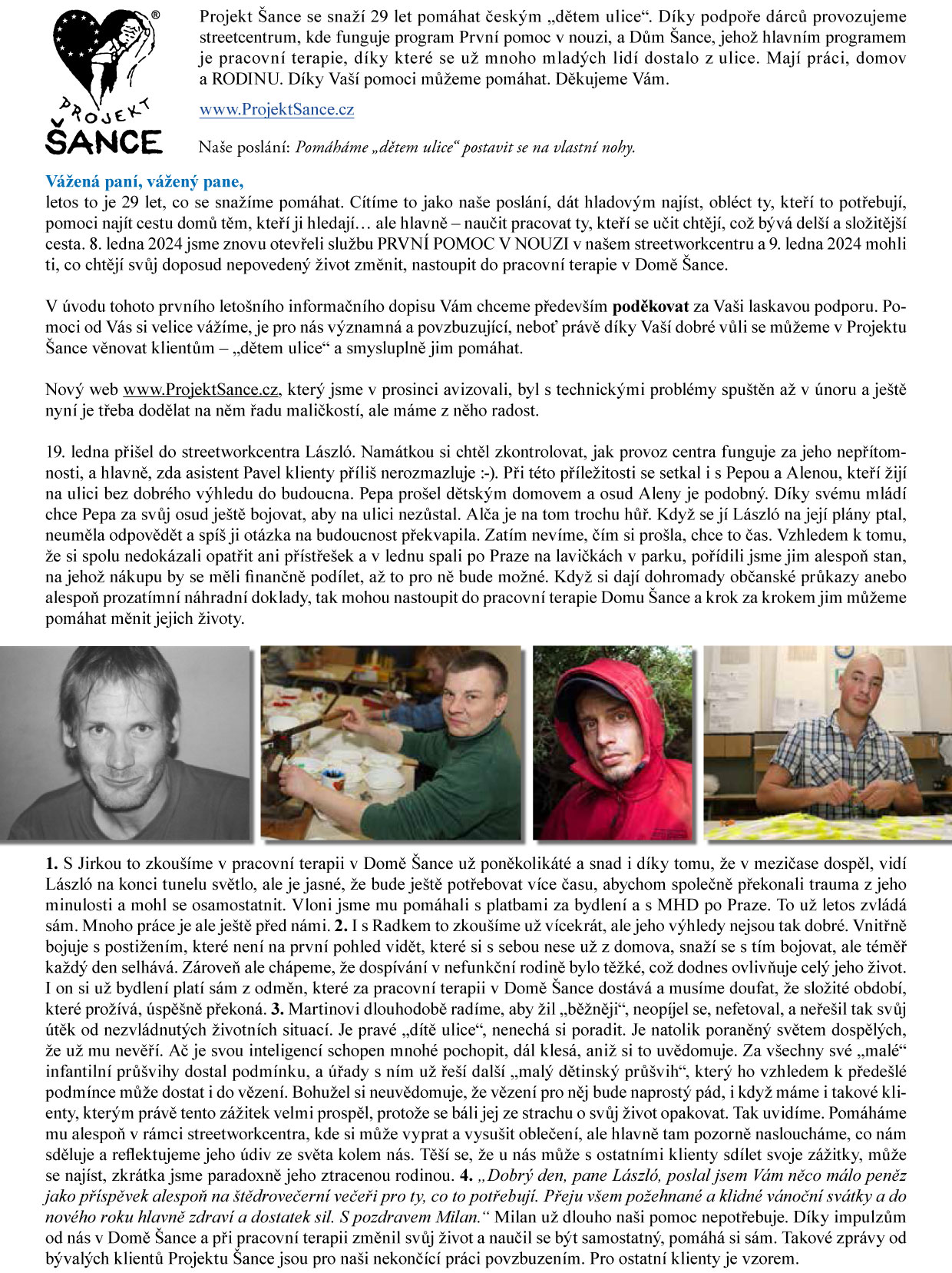 Poslání/práce Projektu Šance pokračují a vedle dopisu si můžete tentokrát prohlédnout další informace, které se nám už do dopisu nevešly…