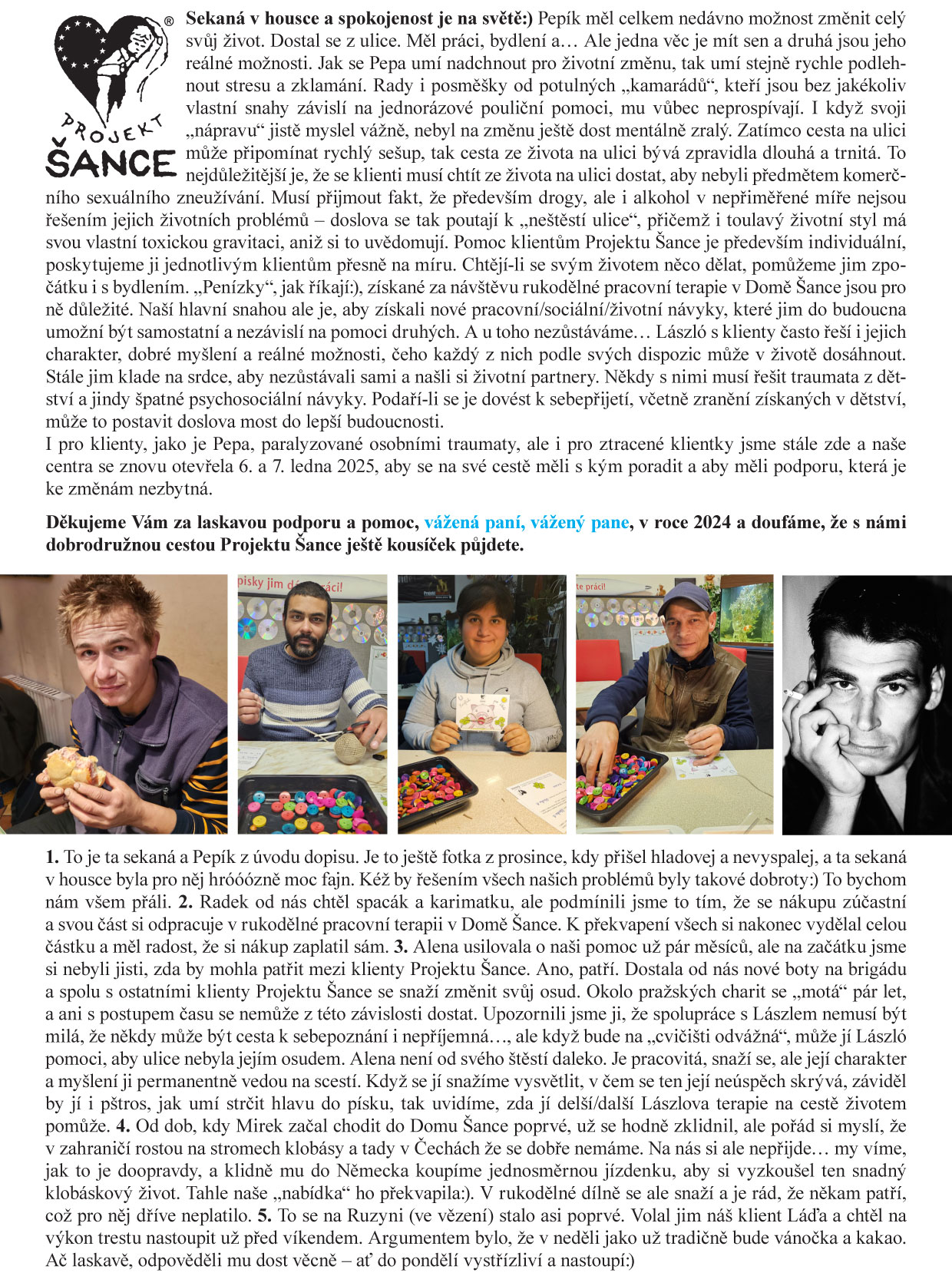 V Projektu Šance nezastavujeme… dokonce ani nezpomalujeme a pomáháme tak, jak nám to klienti sami dovolí. Přečtěte si nejnovější aktuality a co se u nás právě děje.