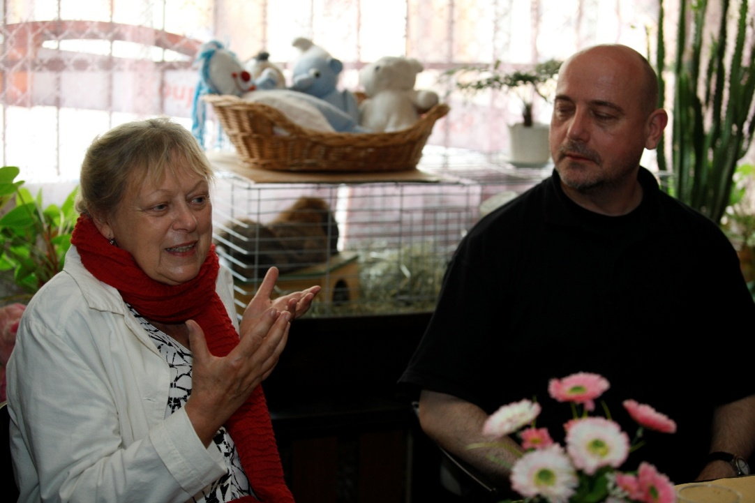 MUDr. Milena Černá, dlouholetá ředitelka Výboru dobré vůle – Nadace Olgy Havlové, na setkání s klienty Domu Šance – na fotografii z Lászlem.
