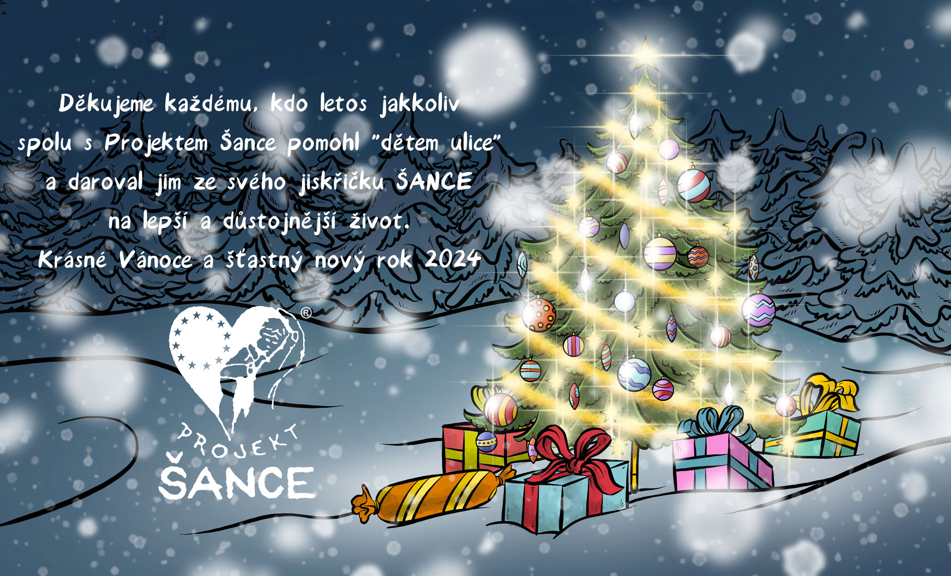 Děkujeme každému, kdo letos jakkoliv spolu s Projektem Šance pomohl "dětem ulice" a daroval jim jiskřičku ŠANCE na lepší a důstojnější život. Krásné Vánoce a štastný nový rok 2024.