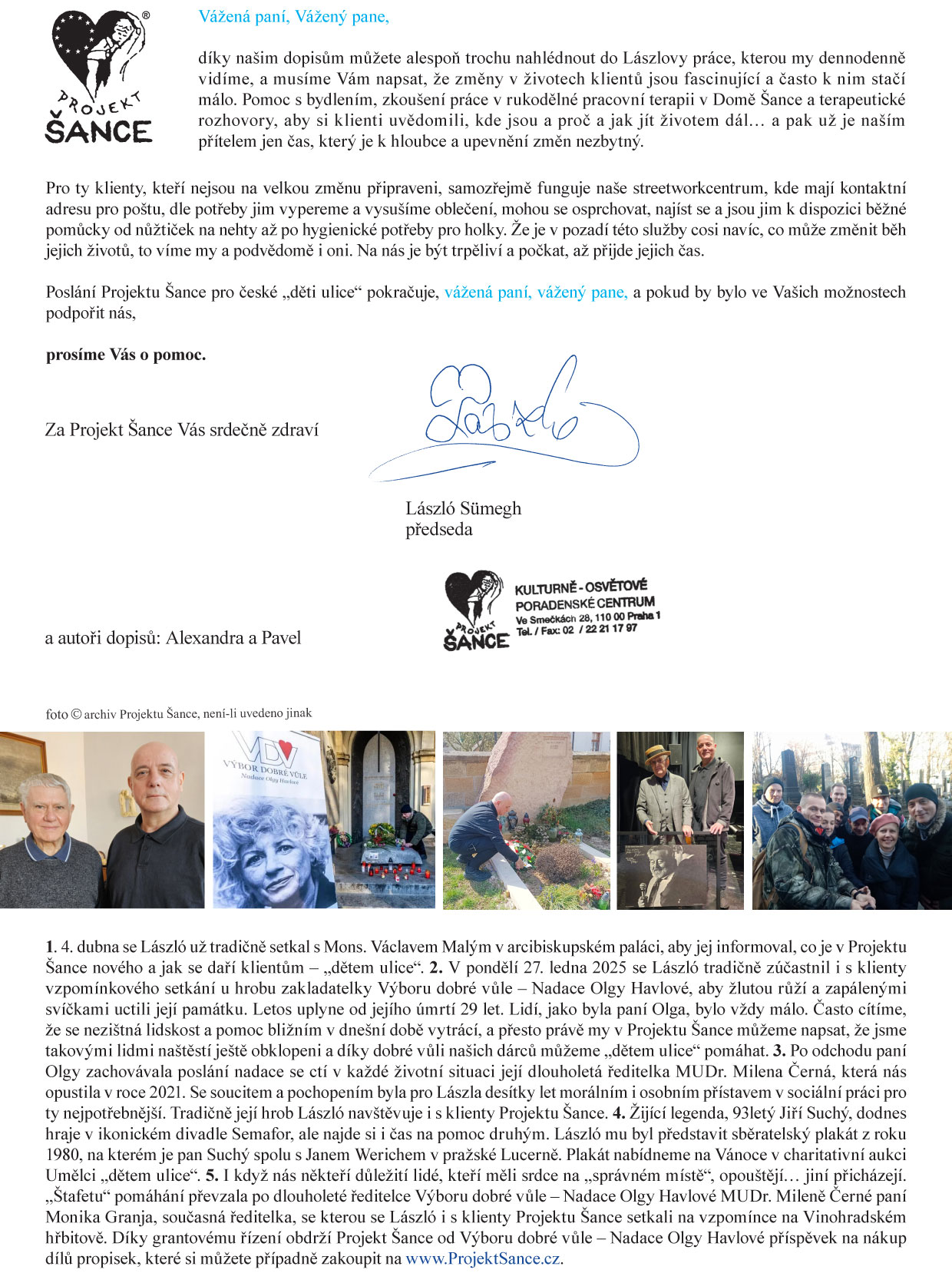 A že nám to jde, si můžete přečíst v dalším dopise, který Projekt Šance vydal.